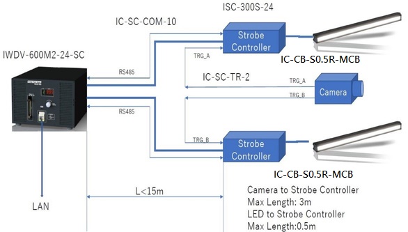 二、一台IWDV-SC系列控制器同時/單獨控制2條線型光源。(※每條光源需搭配一組訊號轉換器)