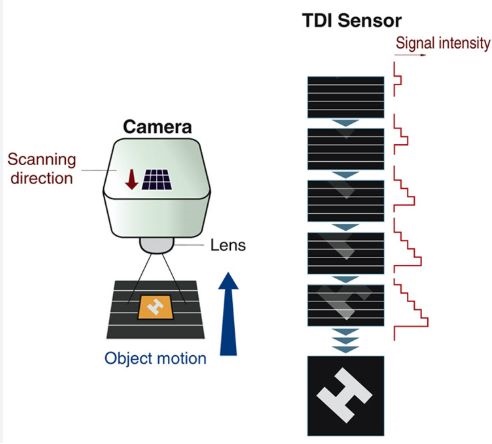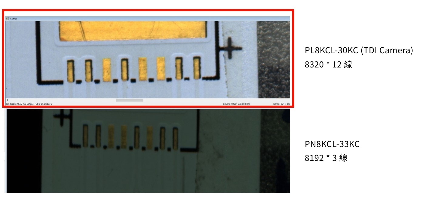● 對於相同物件,相同曝光時間,以兩燈的分時曝光取像,會發現一般TDI相機的影像效果較差。