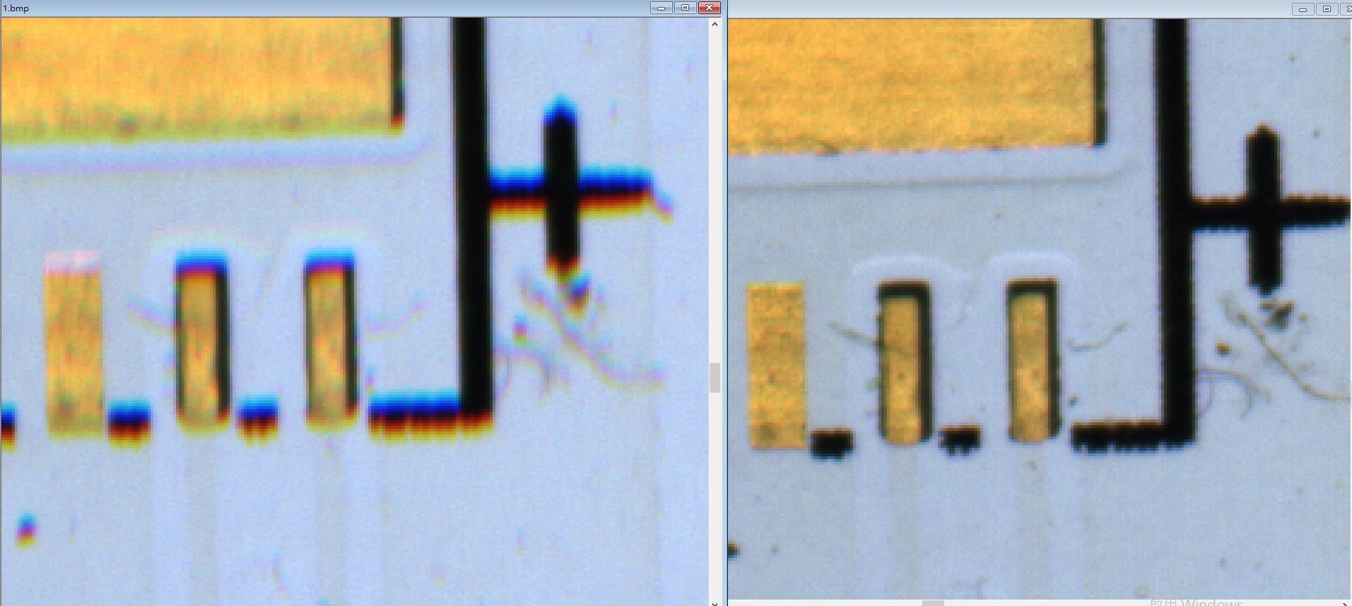 圖九:關閉埃科TDI設定,再以相同兩燈時序進行拍攝,會發現影像RGB疊合位置有異常的問題。